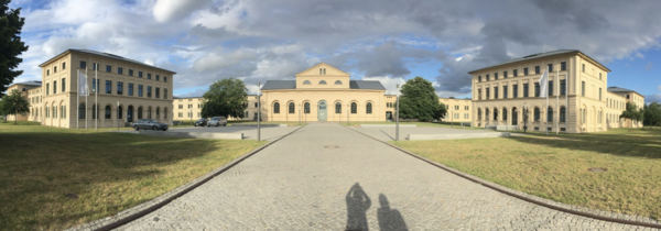 Nach der Wiedervereinigung wurden die Seitenflügel von verschiedenen Ministerien genutzt. Aktuell hat im rechten Flügel das Sozialministerium seinen Sitz, im linken das Bildungsministerium – und in der Reithalle dazwischen die Mecklenburgische Staatskapelle ihren Probenraum.